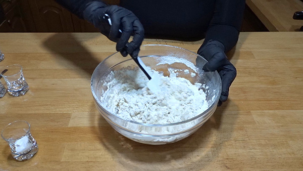 Βήμα 4: Ανακατέψτε με μια σπάτουλα ή ένα κουτάλι και ρίξτε το αλάτι. Μην ρίξετε το αλάτι πιο νωρίς, γιατί θα σας κόψει η μαγιά.