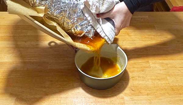 Βήμα 8: Ήρθε η ώρα να βγάλετε το χοιρινό απο τον φούρνο. Βάλτε το ζουμί του σε ένα κατσαρολάκι.