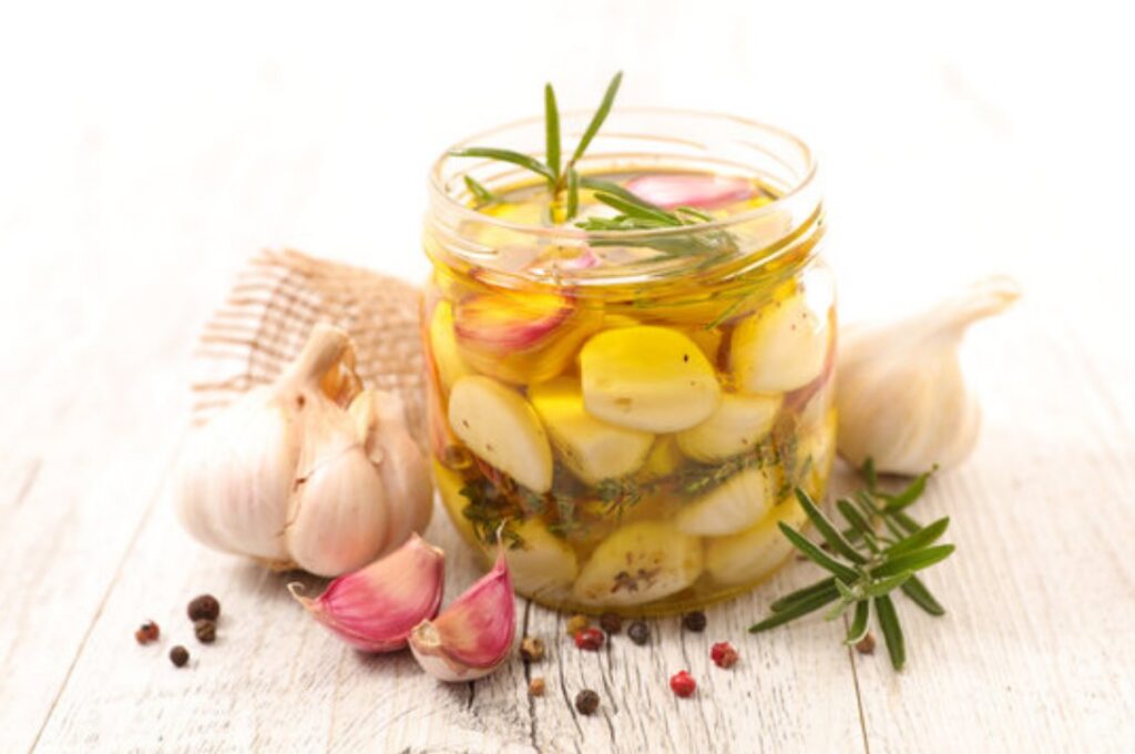 - Άν βάλετε και μυρωδικά στο βάζο, εκτός απο το λάδι, θα αρωματιστεί και το σκόρδο. Εγώ έχω 4 βάζα. Στο ένα έχω σκέτο το σκόρδο με το ελαιόλαδο, και στα άλλα έχω διάφορα για να τα χρησιμοποιώ ανάλογα με το φαγητό που φτιάχνω.